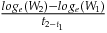 $\frac{{lo{g_e}( {{W_2}} ) - lo{g_e}( {{W_1}} )}}{{{t_{2 - {t_1}}}}}$