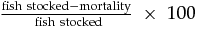 $\frac{{{\rm{fish\ stocked}} - {\rm{mortality}}}}{{{\rm{\ fish\ stocked}}}}{\rm{\ }} \times {\rm{\ }}100$
