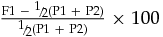 $\frac{{{\rm{F1\ -\ \raise.5ex\hbox{$\scriptstyle 1$}\kern-.1em/ \kern-.15em\lower.25ex\hbox{$\scriptstyle 2$} (P1\ + \ P2)}}}}{{{\rm{\raise.5ex\hbox{$\scriptstyle 1$}\kern-.1em/ \kern-.15em\lower.25ex\hbox{$\scriptstyle 2$} (P1\ + \ P2)}}}}{\rm{\ \times \ 100}}$