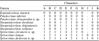 Appendix 2 Character states for phylogenetic analysis of the Petalocrinidae.