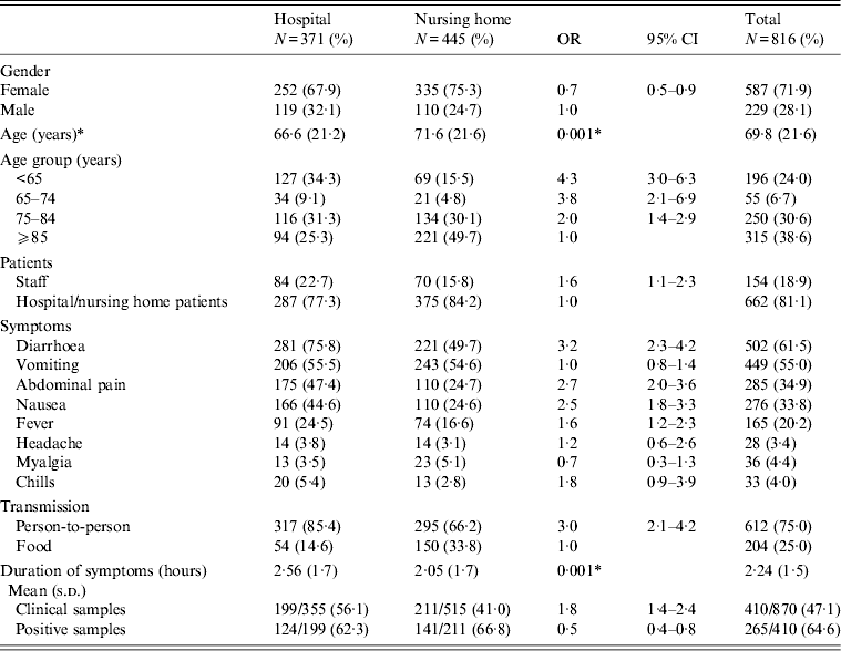 Table 2. Characteristics of patients with norovirus gastroenteritis in outbreaks in nursing homes and hospitals in Catalonia (Spain), 2010–2011