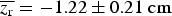 $\overline {z_{\rm r}} = - 1.22 \pm 0.21\;{\rm cm}$