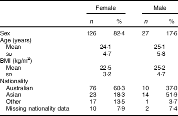 Table 3 Demographic information of participants in the snack study: university students (n 153) enrolled in an undergraduate nutrition degree at Deakin University, Australia