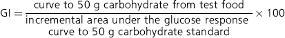 The glycaemic index (GI), put simply, is a number indicating how quickly and by how much a person's blood glucose concentration increases after eating a certain food, and is calculated using the following equation: