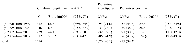 † Rate corrected for the percentage of episodes in which the presence of rotavirus was not investigated.