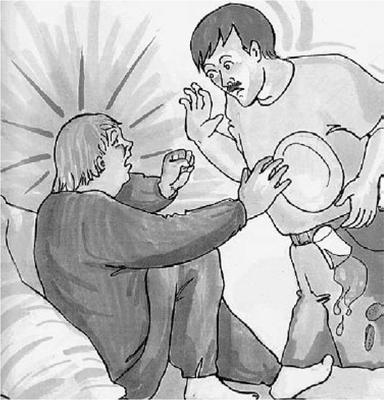 For example, Ron’s Feeling Blue (Reference Hollins, Banks and CurranHollins 2011) tells the story of a young man who becomes depressed, following him through treatment and recovery. He does not seem to enjoy his usual activities, goes off his food, and angrily pushes away the carer who offers him a drink (Fig. 2). ‘He gets cranky, like me’, observed one of our depressed patients.