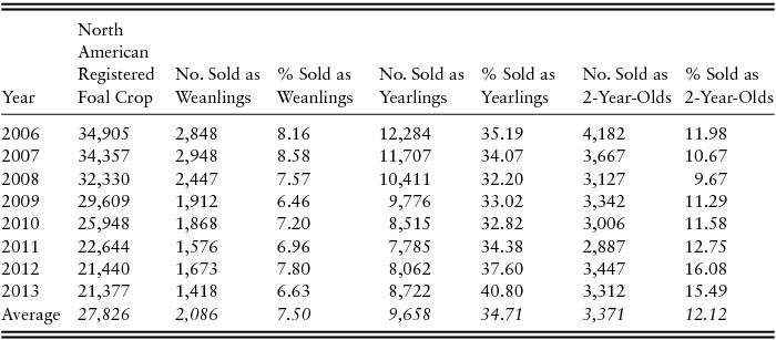 Table 1. Percent of 2006–2013 North American Registered Foal Crop Sold as Weanlings, Yearlings, and 2-Year-Olds2