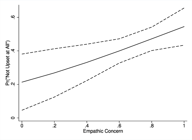 FIGURE 2. Predicted Probabilities of Low Social Distance by Empathic Concern