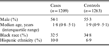 Demographic characteristics of enrolled subjects are shown in Table 1. Although the age range was 0–17·9 years, most subjects were in the younger age groups. For cases, the median duration of symptoms prior to the ED visit was 3 days. The expected seasonal peak during January–April (51% of cases) was observed.