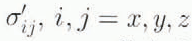 For an element with density ρ and sides ∂x, ∂y and ∂z parallel to the coordinate axes, the stress-balance equations are: