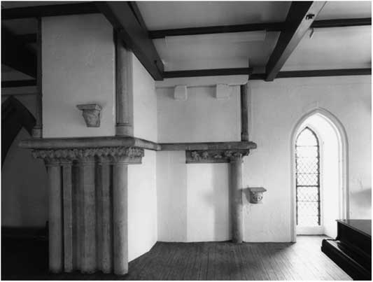 Access to the upper chamber of Lincoln Cathedral’s treasure house – the one in which the seventeenth-century priest-vicar kept pigeons, now a song school – is gained by the staircase originally built as part of the south-east transept. It is entered by a round-headed, unmoulded doorway and it mirrors the dimensions of the chamber below it (figs 4 and 15). The room is well lit by seven large lancets (one now blocked) with continuous keeled roll mouldings, two in each of the east and south walls and three in the west, again echoing the fenestration of the floor below.