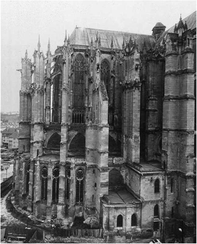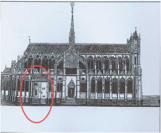 Fig 20 Amiens Cathedral, showing the treasure house originally attached to the north of the choir. Source: Murray Reference Murray1996, pl 78