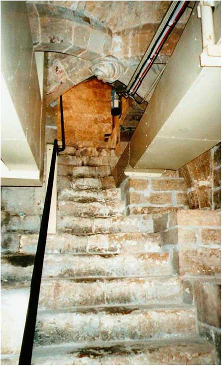 Within the interior of the cathedral, the treasure house is invisible (fig 6). Its former door (now walled up) was plain and straight-headed. The crypt is reached by a straight staircase of twenty-two steps (figs 7 and 8), now accessible only from the exterior of the treasure house via the door in the west wall created during the nineteenth century. However, in 1870 the crypt was said to be ‘approached through a trap-door in the pavement near the vestry’.Footnote 32 So far it has not been possible to find the original opening.