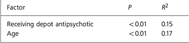 | Receiving depot antipsychotic | <0.01 | 0.15 |