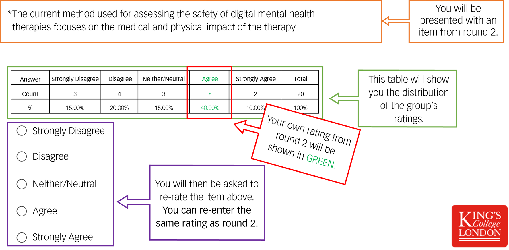 This study was registered as a minimal risk study at King's College London under the reference number MRSP-22/23-34777. Under the above approval, consent was implied by participants’ email agreement to take part and completion of the various requested survey activities (Round 1–3). Furthermore, at the end of each online questionnaire, the following message was presented to participants: ‘Please be aware that submitting this form implies consent to participate in this research’.
