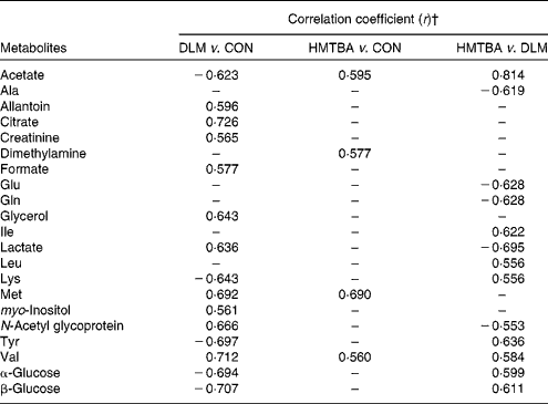 Table 4 Orthogonal projection to latent structure discriminant analysis coefficients derived from the NMR data of metabolites in plasma obtained from the different dietary treatment groups*