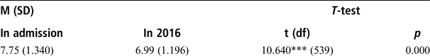 Table 1: Comparison of Students’ Administrative Ranks in Admission (Various Years) and in 2016