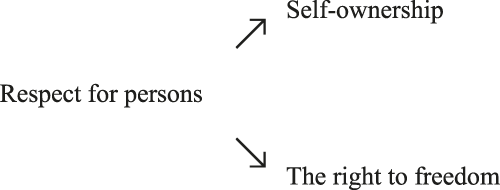 Of course, no sane deontological liberal, whether of the right or the left, recognizes the right of self-ownership without recognizing an accompanying claim to a measure of freedom interpreted in one way or another. This is because deontological liberals believe in respect for persons. But to favor both the basic right of self-ownership and the basic right to a measure of freedom is not to say that one entails the other or contains elements of the other, and neither is it to affirm that the right of self-ownership must itself be conceived as “effective”Footnote 55 or “substantial,”Footnote 56 rather than “merely formal.”