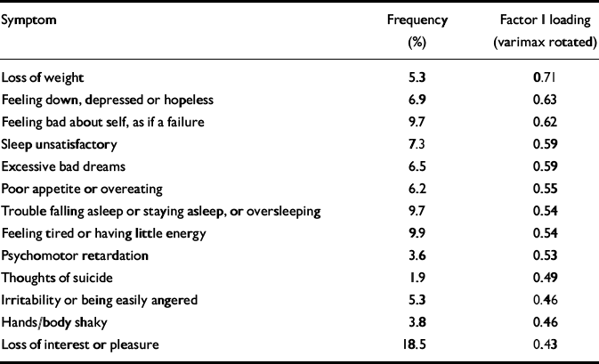 Table 1 Factor loadings on factor 1, core depressive syndrome (n=829)
