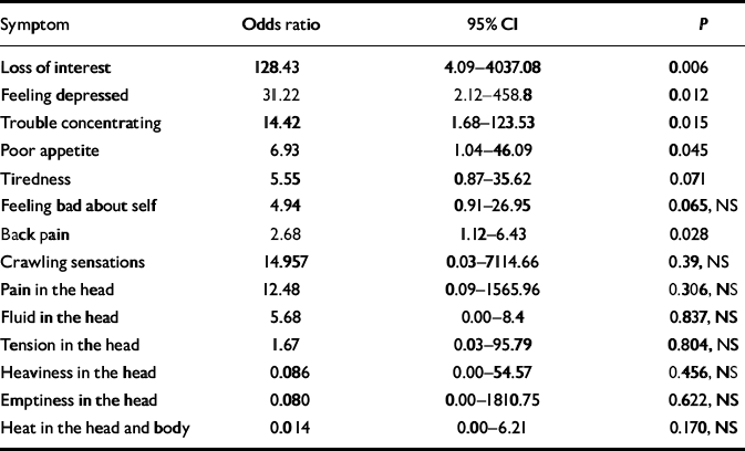 Table 4 Odds ratios (for various symptoms) with depression as outcome variable in a logistic regression model