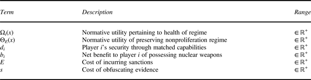 $\underline b $ is A's payoff if only A has nuclear weapons while ΩA(1) is A's payoff if only B has nuclear weapons. We thus assume that if only one country possesses nuclear weapons, A strictly prefers that A has them. Third, we assume that Ωi(.) is linearly additive, which ensures that a state's willingness to comply does not depend on the rate of noncompliance.Footnote 32