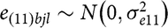 ${e_{\left( {11} \right)bjl}}\sim N\left( {0,\sigma _{e11}^2} \right)$