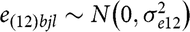 ${e_{\left( {12} \right)bjl}}\sim N\left( {0,\sigma _{e12}^2} \right)$
