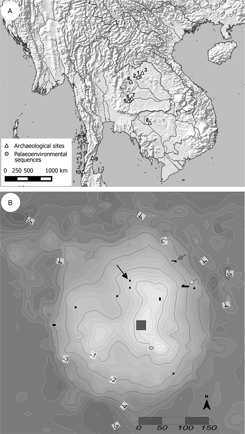 The civilisation of Angkor and its Southeast Asian contemporaries adapted to an unstable monsoon climate, with intense precipitation from April to October, and virtually no rainfall for the rest of the year (Wohlfarth et al. Reference Wohlfarth, Higham, Yamoah, Chabangborn, Chawchai and Smittenberg2016). This paper summarises the most recent evidence for historical climate change in this region and the consequences for rice production and social organisation. The identification of systems of water management for successful rice production was one of the principal results of recent research on the early states of Chenla (c. AD 550–800) and Angkor (c. 800–1430) in Cambodia (Fletcher et al. Reference Fletcher, Pottier, Evans and Kummu2008; Hawken Reference Hawken2011). Without a rice surplus, these states could not have formed and maintained their hegemony. This requirement focuses attention on the nature of rice cultivation during the preceding prehistoric period, with particular reference to the origins of water management and the early intensification of rice production.