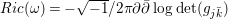 $Ric({\it\omega})=-\sqrt{-1}/2{\it\pi}\partial \bar{\partial }\log \det (g_{j\bar{k}})$ be the Ricci form of