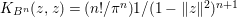 $K_{B^{n}}(z,z)=(n!/{\it\pi}^{n})1/(1-\Vert z\Vert ^{2})^{n+1}$ is the Bergman kernel of the unit ball