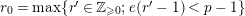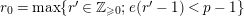 $r_{0}^{\prime }=\text{min}\{r\in \mathbb{Z}_{{\geqslant}0};e(r-1)\geqslant p-1\}$