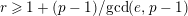 $r\geqslant 1+(p-1)/\text{gcd}(e,p-1)$