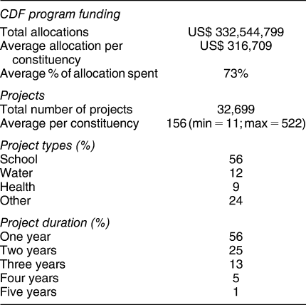 TABLE 1. Basic Statistics on CDF Projects in Kenya, 2003–07
