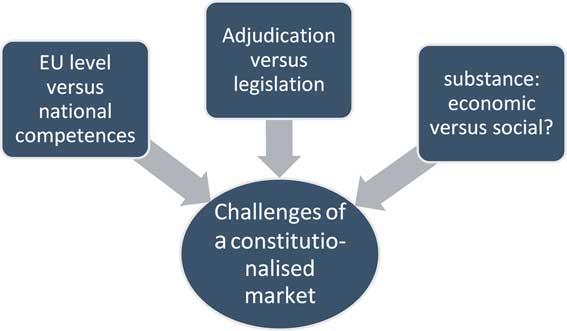 The critique of the EU Internal Market’s impact on social policy seems deceptively simple at first sight: constitutionalisation of economic freedoms and competition law initiates a vicious circle: litigation by individual parties or the EU CommissionFootnote 14 may result in judicial findings of inapplicability of social policy measures at national level on grounds of an infringement of EU economic freedoms or competition law. Replacing any such social policy measures at EU levels is encumbered by the complexity of achieving political agreement in a Union of nearly 30 Member States, resulting in a structural imbalance in favour of economic integrationFootnote 15 and the incapacity of the EU to become a social market economy.Footnote 16