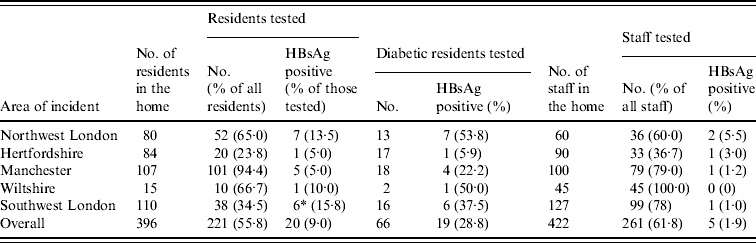 Table 1. Summary of serological testing for hepatitis B infection in residents and staff at each of the homes