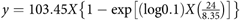 $y = 103.45X\left\{ {1 - \exp \left[ {\left( {{\rm{log}}0.1} \right)X\left( {{{24} \over {8.35}}} \right)} \right]} \right\}$