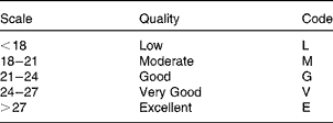 The quality of each publication was validated by applying the JADAD scale and the CONSORT checklist for clinical trials(Reference Jadad, Moore and Carroll16, Reference Schulz, Altman and Moher17)JADAD establishes the quality level according to five items(Reference Jadad, Moore and Carroll16) and the use of the CONSORT checklist ensures that publications follow quality guidelines. We developed a quantitative scale by assigning a value to each item in the list, as shown in Table 1, giving a quality score ranging from 0 to 30 (low to excellent).