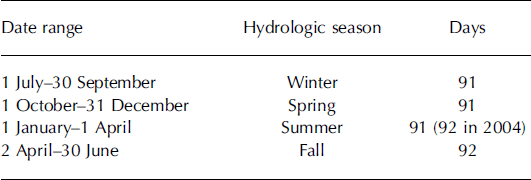 Table 1. Date ranges for austral hydrologic seasons 2002–08
