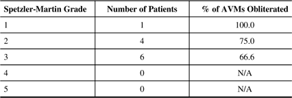 Table 3 Spetzler-Martin Grades and Obliteration Rates for Three Year Follow-Up Group