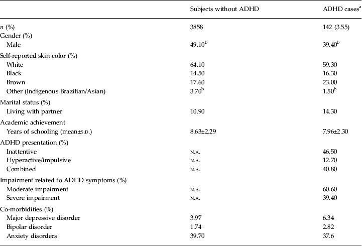 Table 1. Sociodemographics and co-morbidity profile of DSM-5 ADHD cases and subjects without ADHD (n=4000)