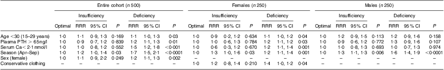 PTH, parathyroid hormone; RRR, relative risk ratio; 25(OH)D, 25-hydroxyvitamin D.