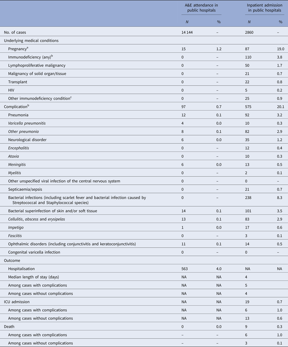 Table 2. Underlying medical conditions, complications and outcomes of varicella-related A&E attendance and inpatient admissions