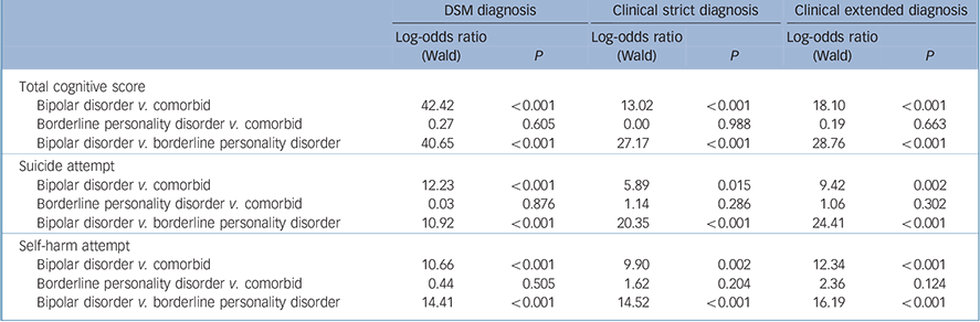Table 3 Log-odds for three diagnostic classification systems for cognition, suicide attempt and self-harm attempt