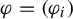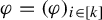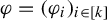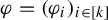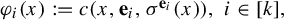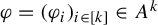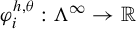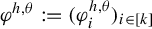 where $ \varphi ^{h,\theta } $ is the $ k $ -tuple of elements of $ \operatorname {C} ({\Lambda ^{\infty },\mathbb {R}}) $ that is defined for all $ i \in [ k ] $ and $ x \in \Lambda ^{\infty } $ by