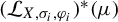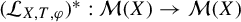 $$ \begin{align*} ({\mathcal{L}_{X,T,\varphi}})^{\ast} ({\mu}) = \unicode{x3bb} \mu .\end{align*} $$
