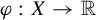 3. (c) $ \varphi : X \to \mathbb {R} $ is a continuous function, that is, $ \varphi \in \operatorname {C} ({X,\mathbb {R}}) $ .