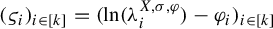 $$ \begin{align*}\varsigma := \bigg({\frac{1}{\beta} ({\ln ({\unicode{x3bb}^{\varphi^{h,\theta}}_{i}}) - \varphi^{h,\theta}_{i}})}\bigg)_{i \in [ k ]}; \end{align*} $$