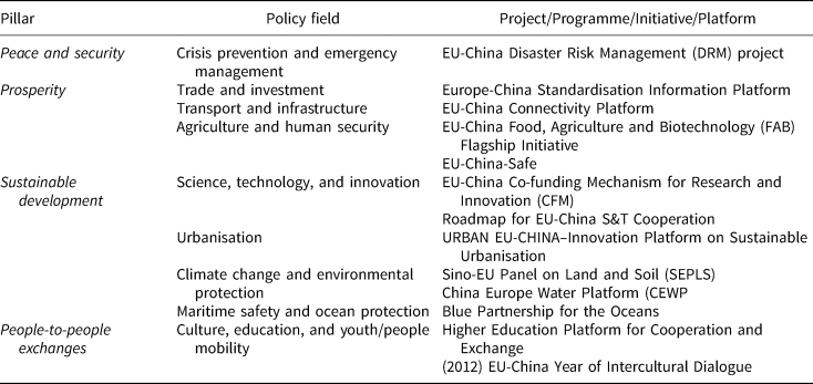 Table 1. Examples of concrete actions of policy implementation within the EU-China Cooperation.