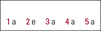 | 1 | a | 2 | e | 3 | a | 4 | a | 5 | a |