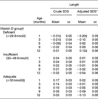 Table 4 Mean length standard deviation scores (SDS) for the vitamin D categories at ages 1, 3, 6, 9 and 12 months